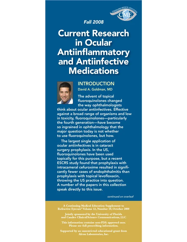 This educational activity seeks to present recent findings with respect to topical ocular antibiotic and nonsteroidal antiinflammatory drugs. These are presented in the form of structured summaries that provide purpose, experimental design, evidence obtained, and conclusions. An Introduction provides a context for evaluating the clinical significance of the studies presented and their applicability to clinical practice.